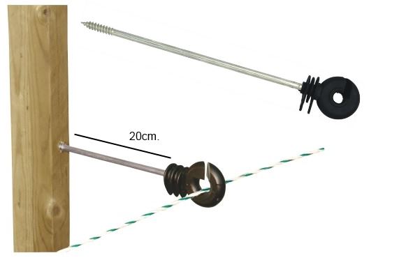 | Ring Insulator | Same moulding as an Ultimate Ring Insulator with a 200mm extension. Suitable for wires, twines or rope. The kink makes these easy to screw into a post. Supplied in packs of 20. Insulators are supported by a 20cm x 6mm high tensile steel shaft. |