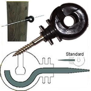 A solid insulator to attach a gate handle Standard loop and hook with an insulated screw-in attachment for a wooden post. The insulated attachment screws onto a wooden post. May...