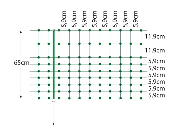 - The net is high quality with a very good conductivity of 0.3 Ohms/m (the lower this figure is - the better) 65 cm tall and is Green